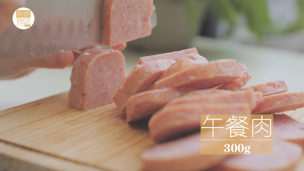 20g鱼饼切三角、300g午餐肉切块、300g卷心菜切块、200g泡菜切块、200g芝心年糕备用。