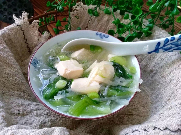 准备好所有食材,白萝卜,油菜,白玉豆腐,葱