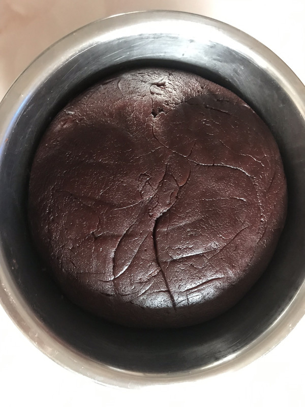 这个状态就可以分次加入玉米油了,一直小火翻炒,必须用不粘锅,不然会糊底。