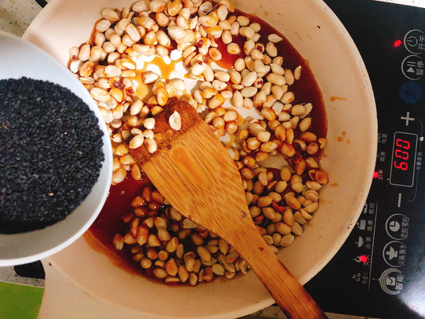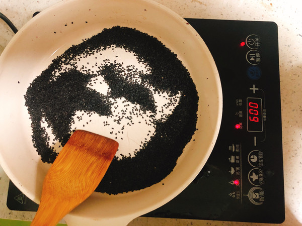 芝麻炒至有芝麻在锅里跳就表示熟了(大约需要15分钟)