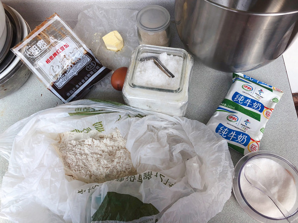 准备好所有食材,红豆馅可以自制,我这里正好有上次留下的,就用了,其他牌子的也没问题