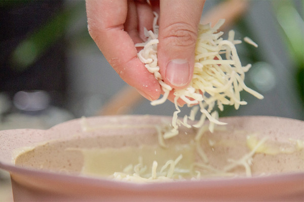 奶油奶酪完全融化后我们加入一半的马苏里拉芝士继续搅动,搅到芝士完全融化,再放入剩下的一半继续拌匀,等芝士完全融化并且土豆泥呈细滑状态了就可以吃啦。