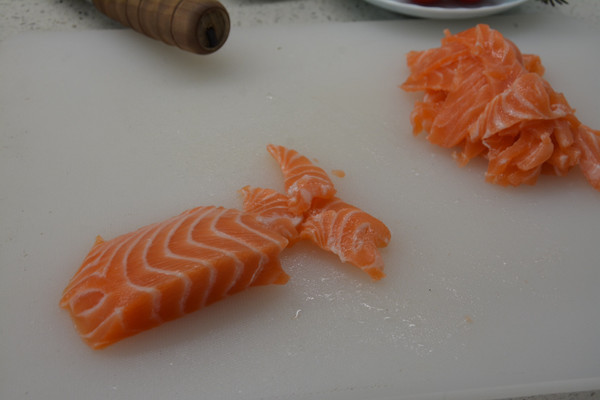 三文鱼配的芥末和酱油全部倒入,加入两勺蔬菜蛋黄酱即可