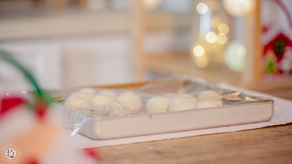 冬天时可以放在烤箱内部,旁边搁一杯热水,加快发酵。