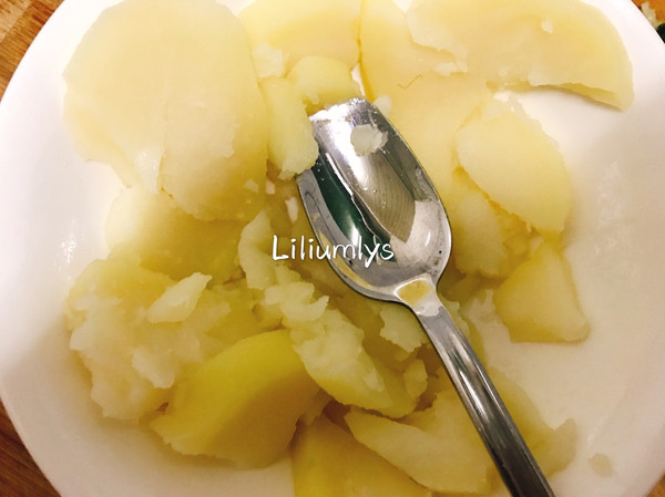 土豆蒸熟压泥,调味随个人喜好,我喜欢甜口的。