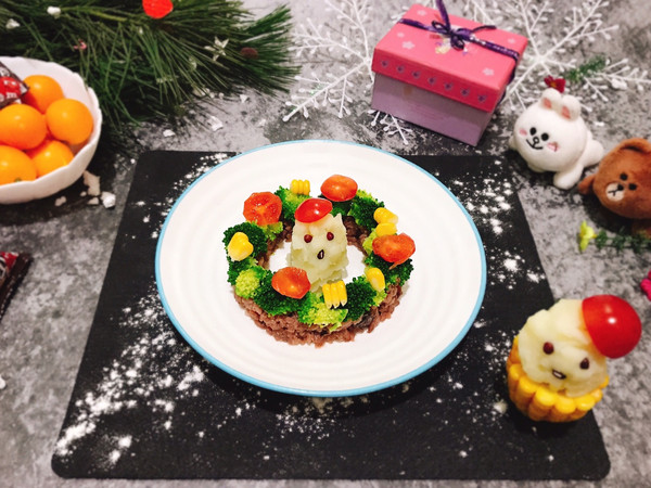 #令人羡慕的圣诞大餐#圣诞老人和花环(