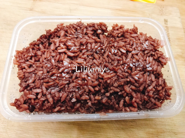 红豆红枣米饭加入牛奶、白糖拌匀。