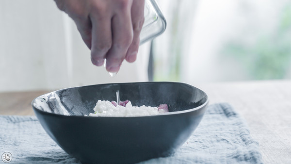 加入滤出的姜葱水,拌入葱花。