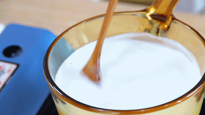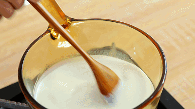 煮到牛奶的水分渐渐蒸发,变得粘稠,就可以关火了。 *大约20分钟左右,牛奶就会变成浓稠的炼乳啦!
