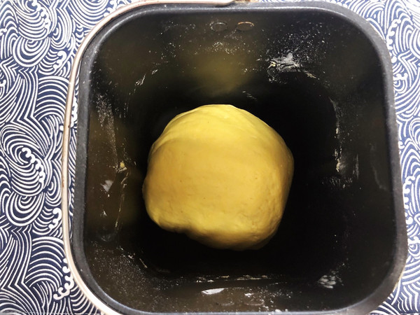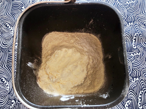 面包机中先加入酵母水,再加入晾凉的玉米面。