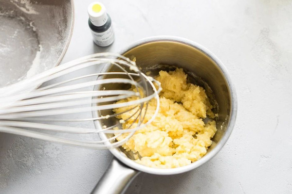牛奶&黄油加热至升温冒热气时离火,加入面粉搅拌至锅底&锅壁干净,无多余水分,如果有多的水分可以小火加热蒸发掉