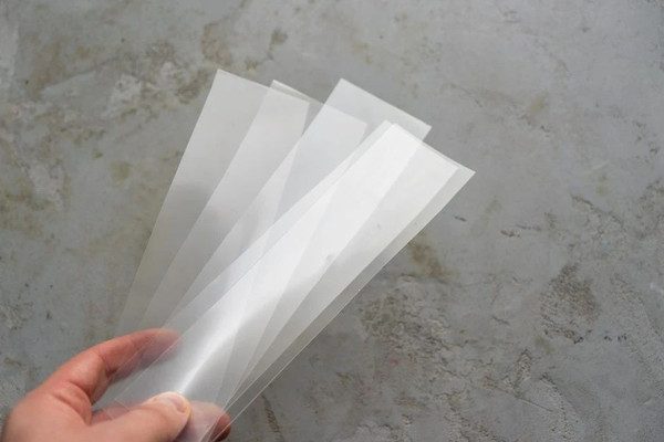 玻璃纸切割成12*7cm的长条,找一个直径约1cm的光滑圆柱形