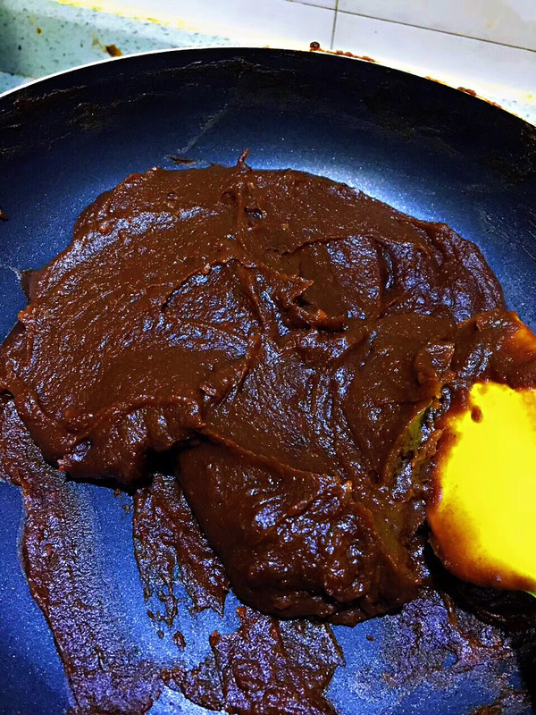 倒入不粘锅中小火慢慢翻炒。