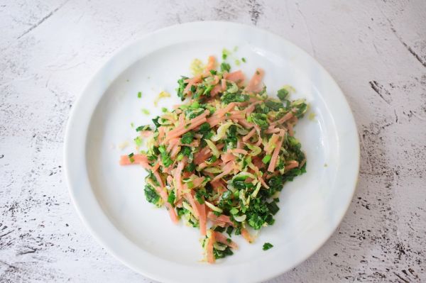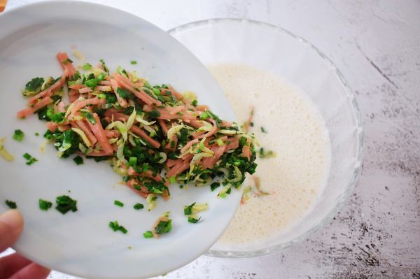 韭菜洗净切碎,火腿切丝,虾米洗净备用