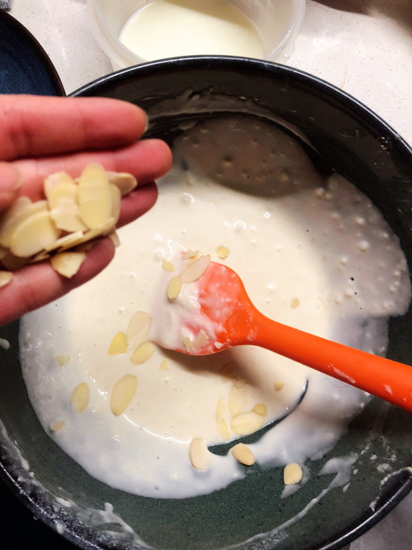 面糊中加入适量的扁桃仁,按自己喜好加吧,拌匀