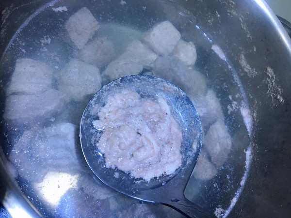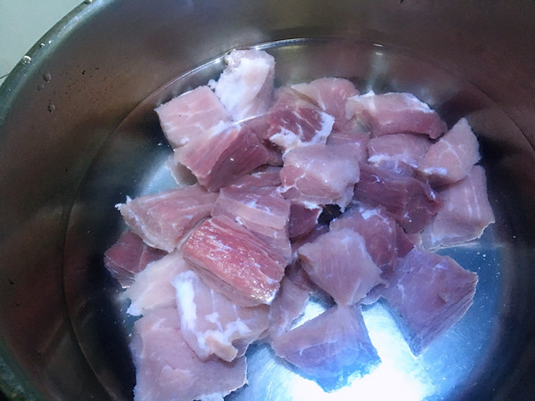 锅里放入适量水,瘦肉凉水下锅煮开。