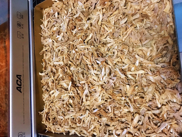 放入预热好烤箱,190度上下火烤20分钟左右,中途要不时翻动一下让肉丝受热均匀。