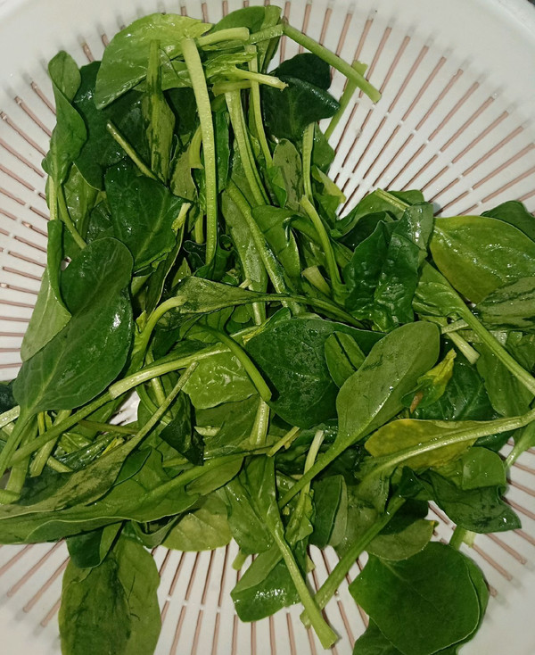 2.锅中放油,油热放入菠菜翻炒!多翻炒会儿!(差不多草酸蒸发掉)
