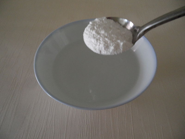 碗里放适量冷水,放入1勺糯米粉,搅拌成糯米水备用。