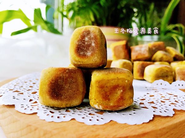 底部金黄后,用筷子不停翻面,煎到四面金黄,表皮酥脆,内部结构柔软,高钙南瓜小馒头就好了。