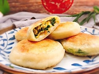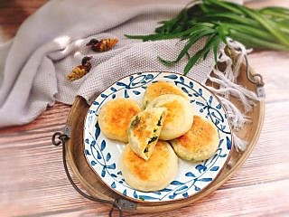 烧热以后下韭菜盒子进行煎制,开小火煎制