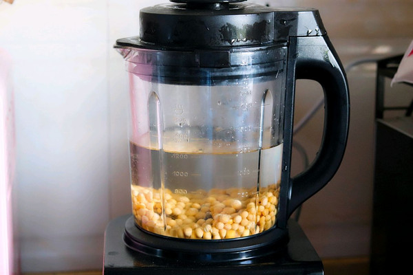 搅打成豆浆(做豆腐脑不能用豆浆机直接打,加热过的豆浆不成型)