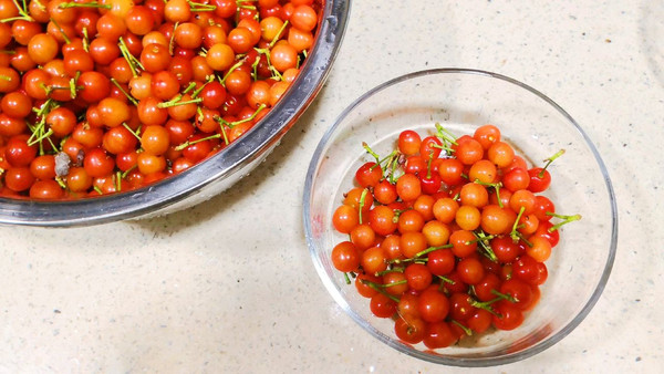 找一个耐高温的容器,加入500g纯净水(水面刚好和樱桃体积同高),加入500G冰糖。