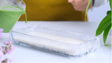 2.吉利丁片倒冷水里泡软 注意点:一定要用凉水泡,天气炎热建议在水中加入冰块再将吉利丁片泡软,防止温度太高导致吉利丁片融化