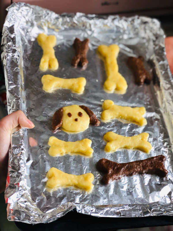然后放烤箱,170度烤18分钟。单身狗饼干就出炉啦~