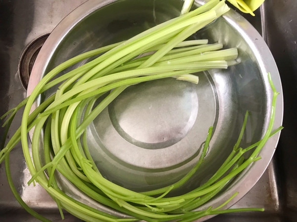 芹菜择去叶子,去掉根部,清洗干净泥土。