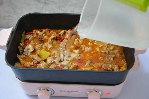 接着下入沥干水的牛肉,翻炒出多余的油脂,然后牛肉起锅装碗待用。