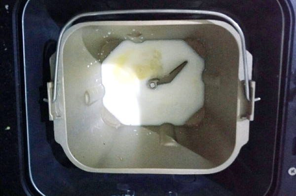 首先把牛奶、冰水、鸡蛋、细砂糖放在面包机种搅拌均匀