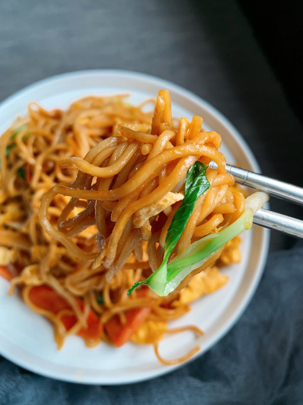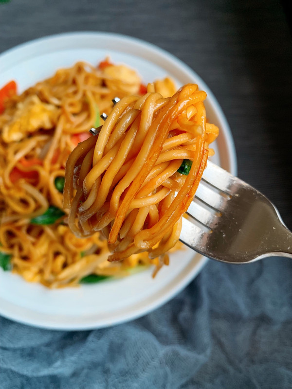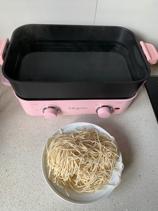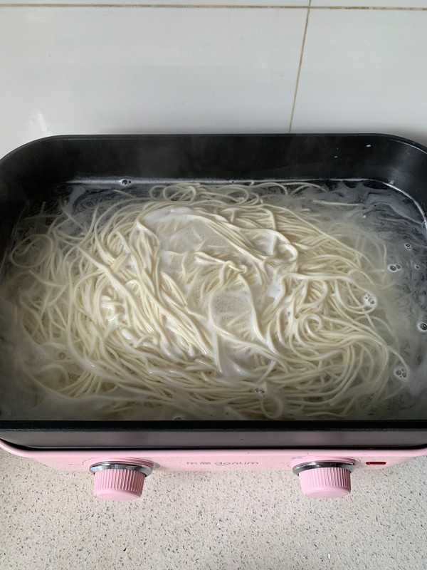 面条捞出,放凉水中浸泡片刻,快速降温,让面条不粘连。沥干水分。