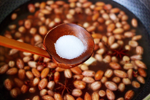 煮熟的花生米,放在调料水里浸泡半个小时,这样更容易入味。