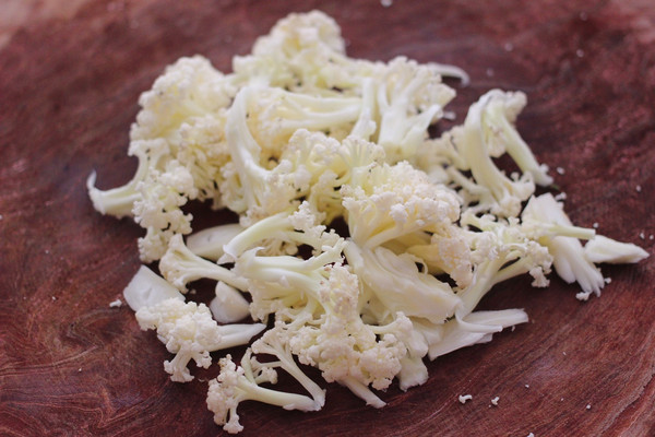 把有机菜花用刀切成小朵。