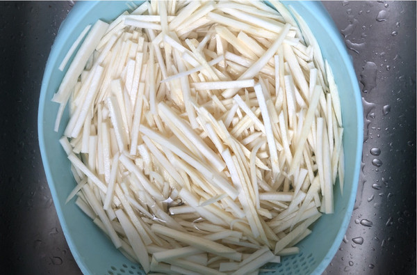 茭白丝过一下清水,沥水备用