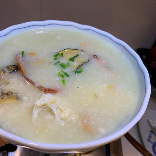海鲜粥熬好了,味道鲜美,全程不需要加一点调料哦~盐也都不需要~爱吃胡椒粉的亲,可以放一点点~