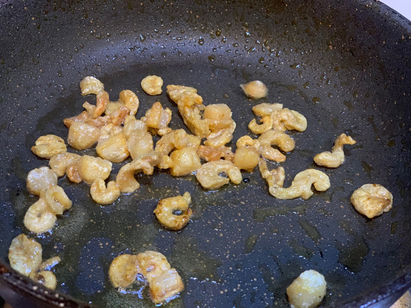 大蒜末爆香待用,蒜有点偏黄了就可以装盘待用