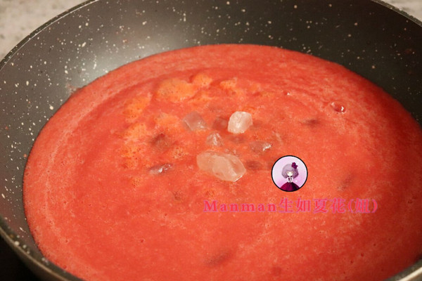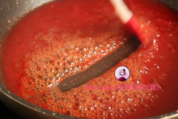 熬到用铲子划动出来痕迹不消失,番茄酱特别粘稠的时候就差不多了。