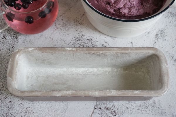 磅蛋糕模具中,刷黄油,筛面粉,防止粘模。我用的是学厨小号磅蛋糕模具,此配方可以做一个。