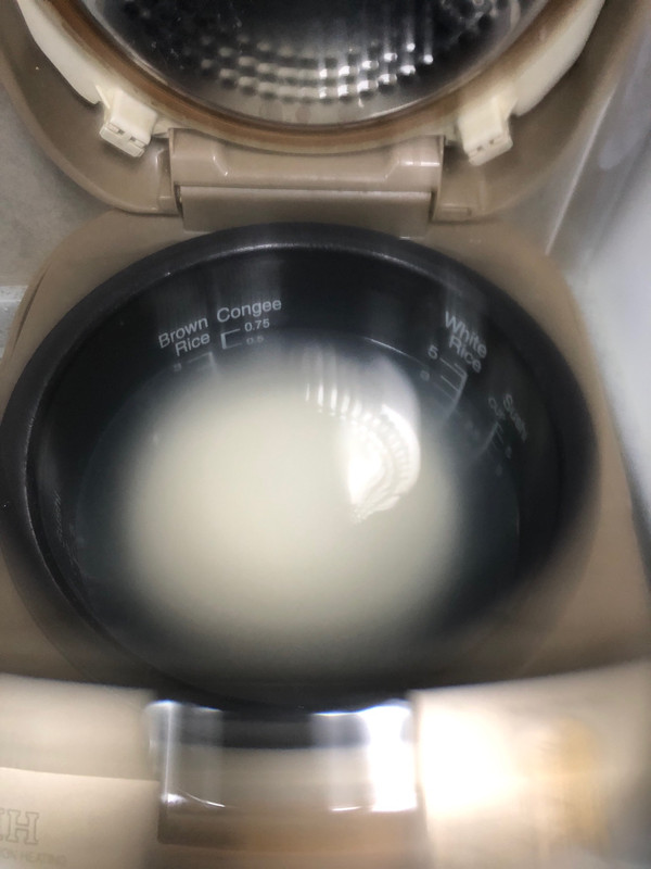 把米洗净,放入适量的水。电饭煲调节到煮粥功能。我家的电饭煲需要2.5小时能够煮好。(如果心急可以放在灶上直接煮)