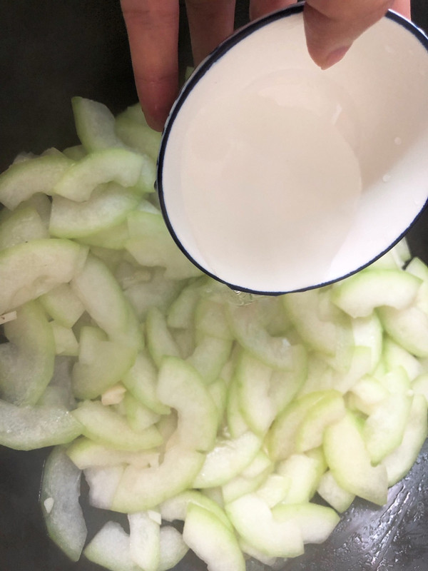 瓜肉变半透明加入剩下的蒜,翻炒均匀就可以出锅了