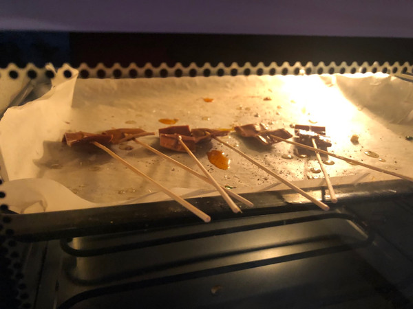 190度烤箱预热,放进去烤,一共烤10分钟左右