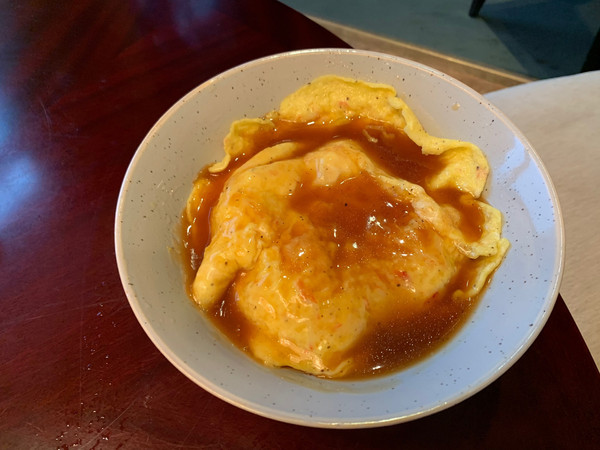 碗里加两个鸡蛋,大葱,蟹肉搅拌均匀