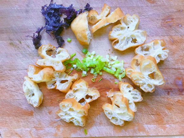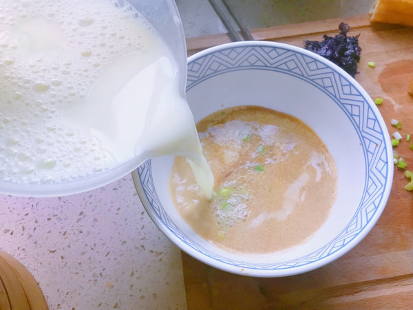 接着加入葱花 紫菜 油条 开吃吧 做好的咸豆浆是絮状的哦