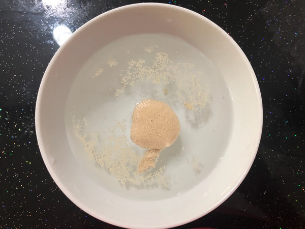 4g酵母加到190g水里搅拌均匀,冬天可以用温水。