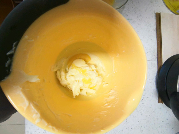 分次加入蛋液,这里的蛋液不是冷藏后的。常温的比较好。
