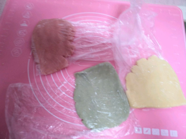 用手,用刮刀都可以搅拌到看不到干粉,想做什么颜色就加入果蔬粉混匀。