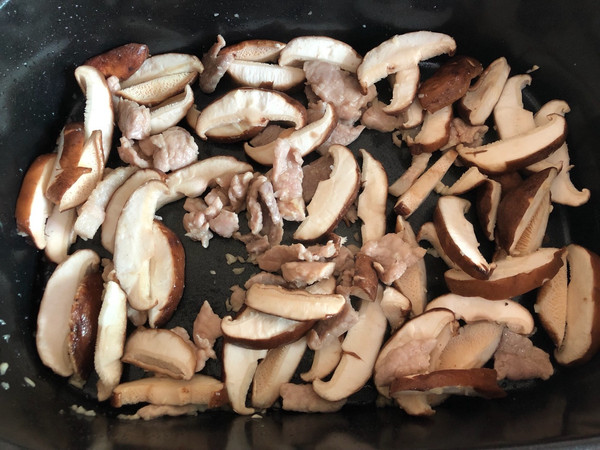待香菇变软,食材都炒熟后加入适量盐、蚝油调味,撒上葱花翻炒均匀即可。