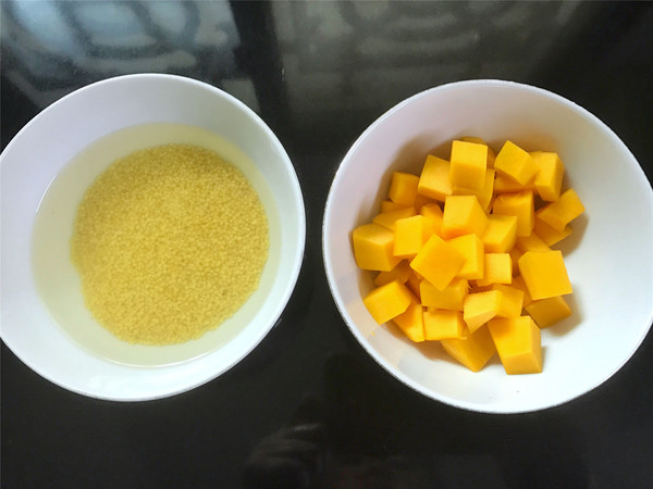 小米用凉水淘洗干净浸泡半小时候左右,南瓜去皮切成小块。